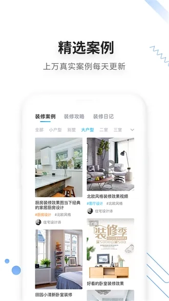 它的优势也很突出,拥有丰富的流行效果图图库,您可以参观同城的样板间,还能获取各类实用的装修攻略。
