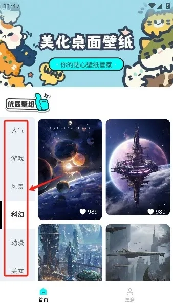 智能分类系统,可按喜好筛选或依热度排序找壁纸。