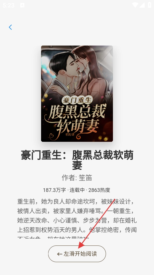 3、在书籍详情页,向左滑动“左滑开始阅读”按钮,即可进入书籍阅读界面。