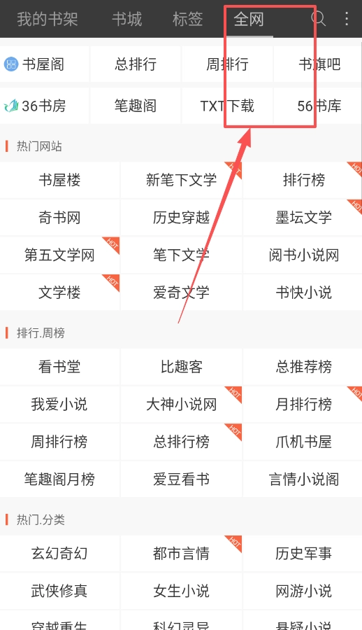 书城页面适合进行泛浏览,用户可以根据玄幻、都市、历史等不同大类来了解作品的分布情况,还能结合“三国”“系统”等细分标签进一步缩小范围、聚焦目标内容。