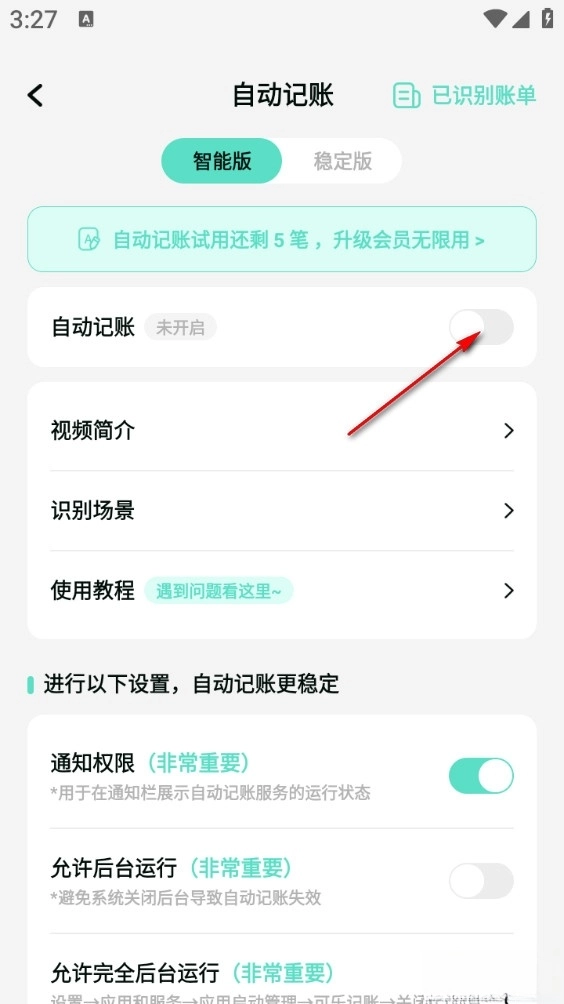 最后打开软件权限即可开启自动记账