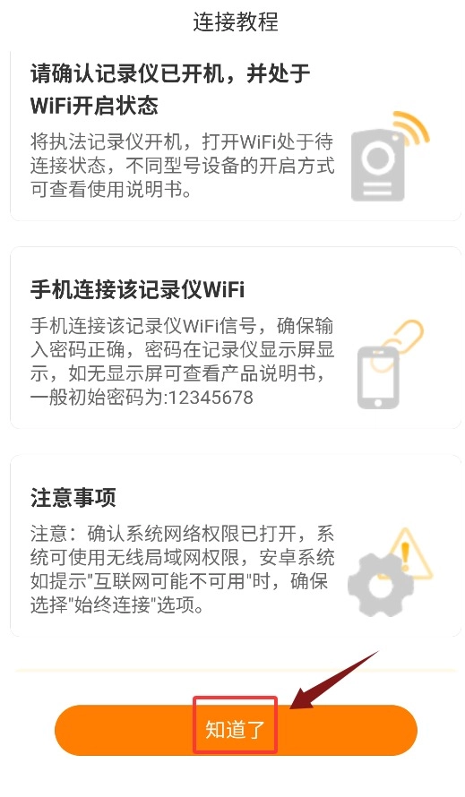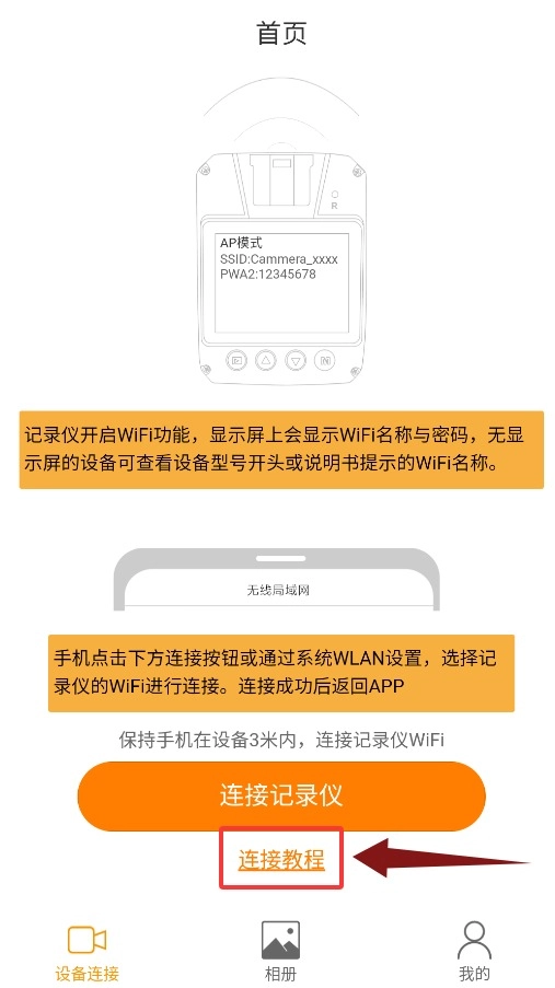 查看教程后回到上一页,点击连接记录仪就能开始配对了。