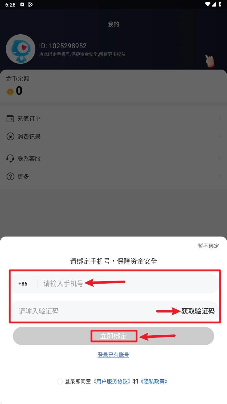 若账户未绑定手机号,点击头像区域,按提示填写手机号码并输入验证码,就能完成手机号绑定操作。