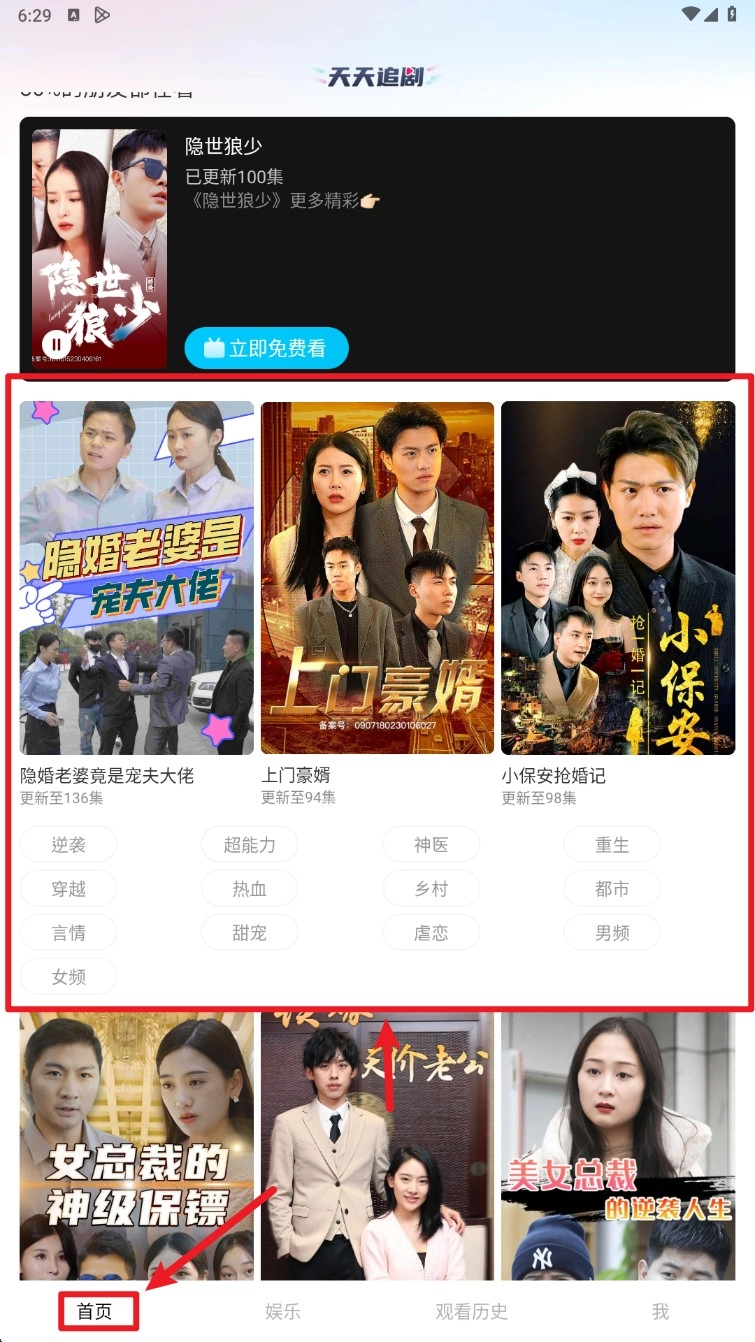 回到首页查看推荐剧集,点击封面就能进入播放页面,随时追看热门好剧。