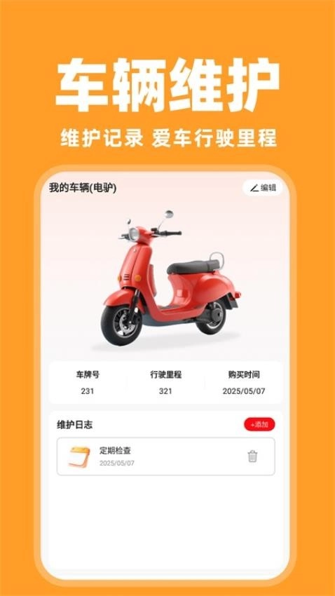 车辆的维护日志可随时记录,还能添加详细的维护信息,行驶里程也能随时查看,让车辆维护更轻松。