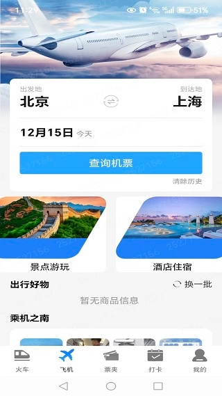 在飞机页面,也能结合航班查询结果,预定机票 。