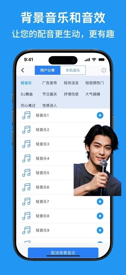 丰富的背景Bgm音乐库,还可以使用本机音乐文件;