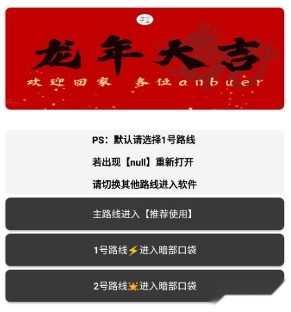 安装anbu0暗部共享软件库免费版应用并打开,默认会进入1号线路,建议优先使用主线路,实际操作中可选择能正常进入的线路。
