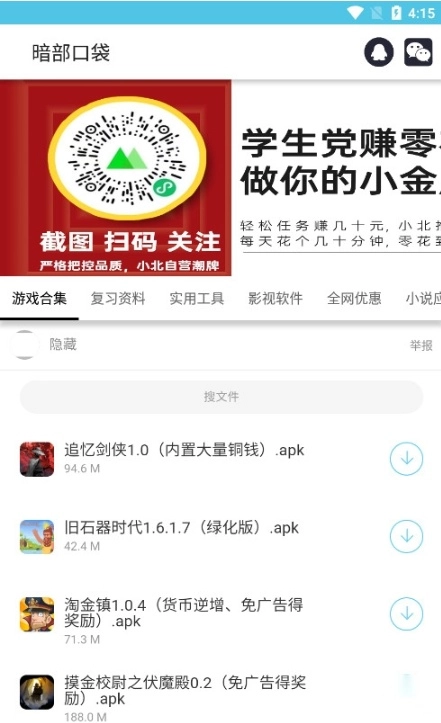 可以看到anbu0暗部共享软里的资源分享合集,涵盖了非常多不同的种类,大家可以挑选自己需要的游戏或者应用。