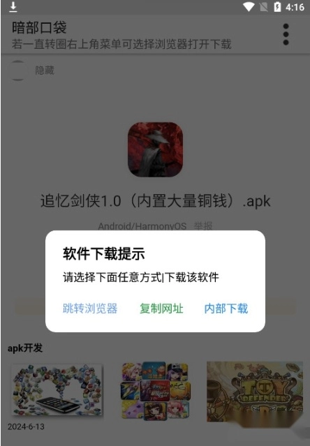 点击时要是一直转圈,就点右上角的三个点打开浏览器;软件会提示推荐跳转浏览器、复制网址和内部这三种方式,选哪种都行。