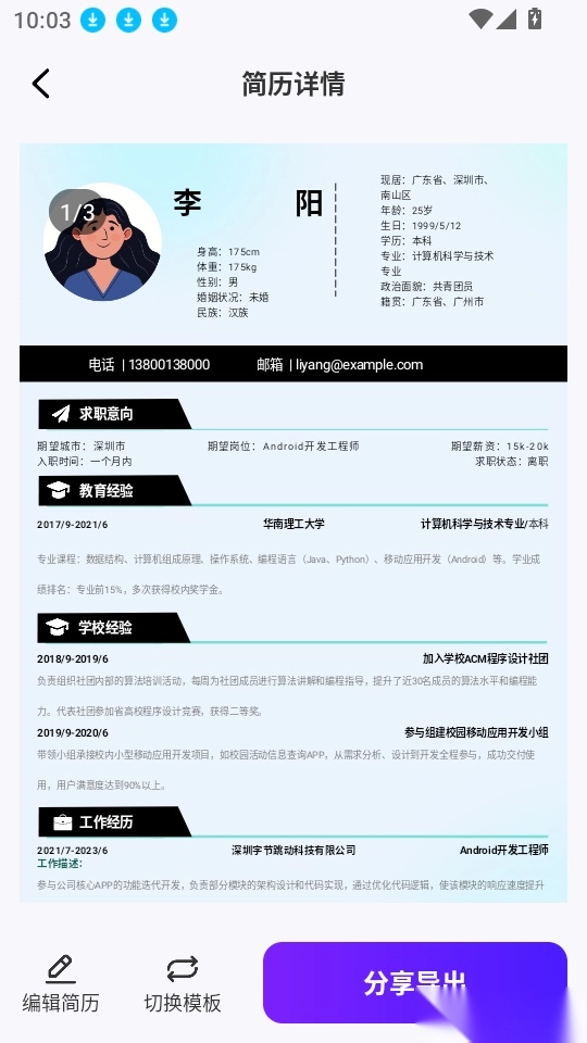 5、丰富多样的简历模板可供自由挑选,让你能轻松打造出优质简历。