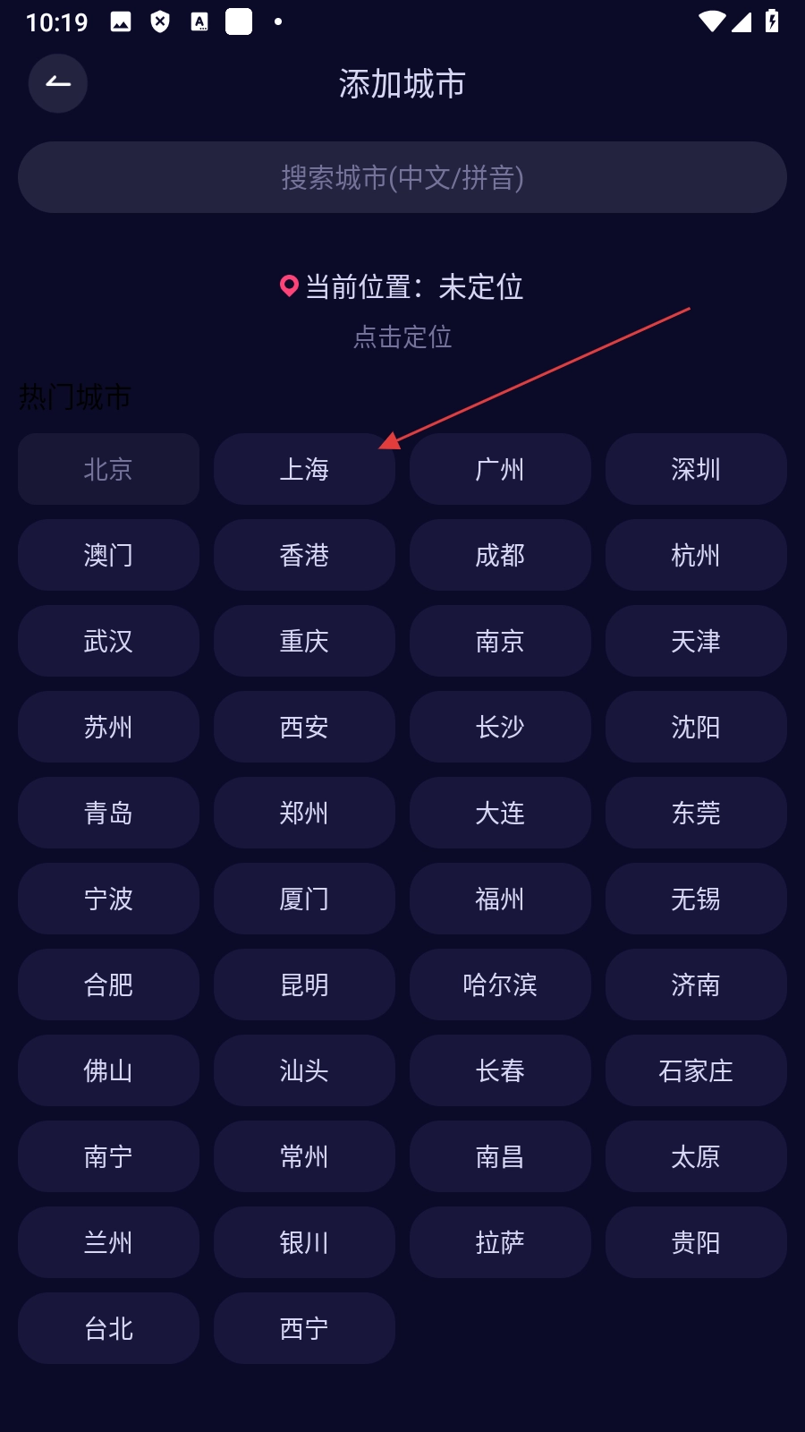在添加城市的页面中,点击搜索框,为输入城市名称做好准备。