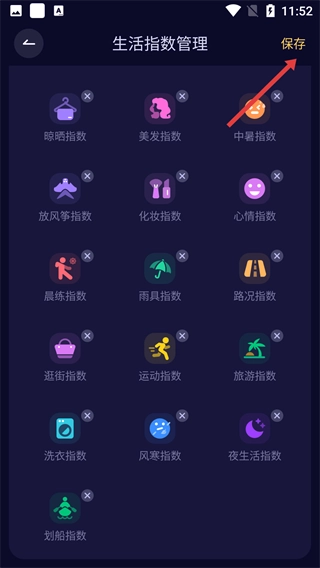 保存好设置后返回天气主界面,就能查看新添加的生活指数相关信息了。