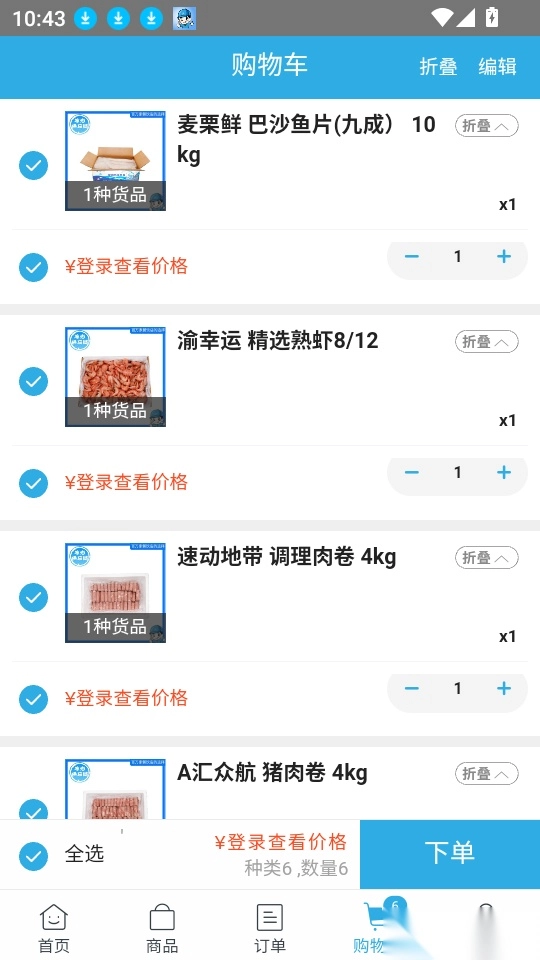 4、接着就能在“购物车”页面里挑选所需的商品,点击“下单”按钮完成批量选购与下单操作。