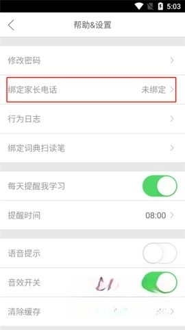 2、可在设置里选择绑定家长的联系电话,这样家长也能及时关注到学生的学习进展情况。