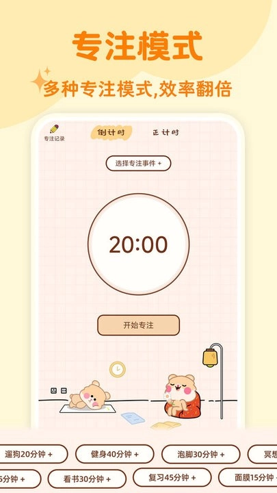 - 标签: 打卡习惯养成 专注模式管理 任务进度追踪