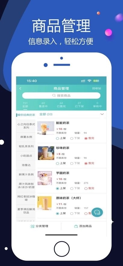 菜品管理功能:可实现菜品的添加、编辑、删除以及分类等操作,同时支持菜品图片上传与描述编辑,助力商家更便捷地管理和展示自家菜品。
