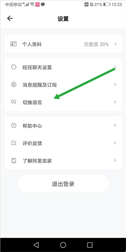 打开并登录TradeManager手机版(也就是阿里卖家),进入【我的】页面后,点击右上角的设置图标(位置见下图绿色箭头所指处)