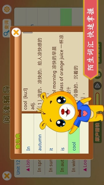 每个单词都配有生动形象的卡通插图,还附带详尽的词典释义,能帮助孩子更轻松快捷地掌握所学单词。