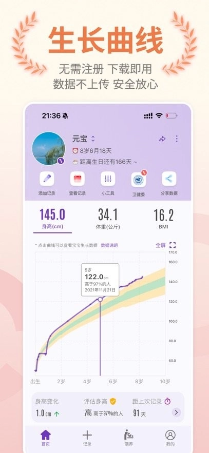 极简操作:仅需几次点击,就能完成身高与体重的记录,界面简洁明了,父母可轻松上手。