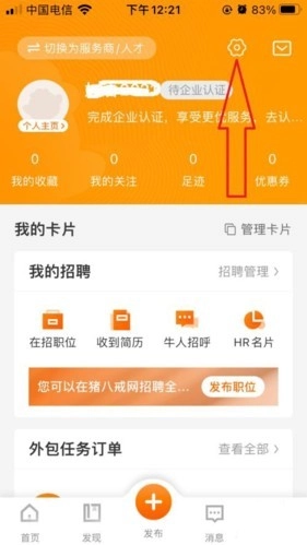 进入到猪八戒我的页面,点击设置图标