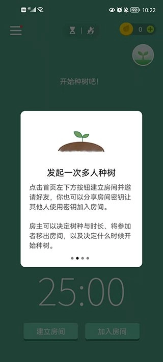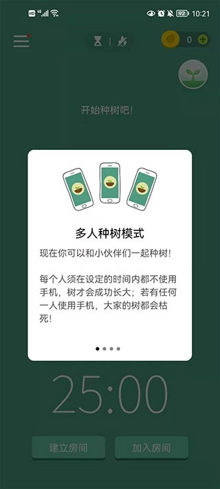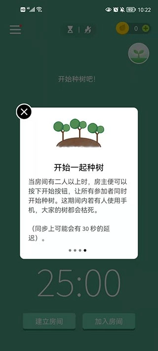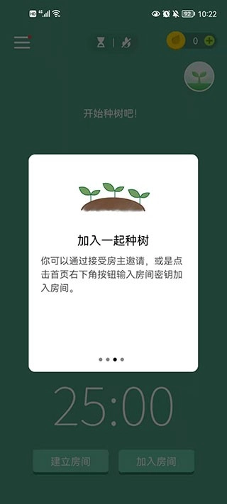 点击“加入房间”后,你可以直接从列表里挑选房间,也能通过搜索好友创建的房间号来加入。不过要留意,在共同种植的过程中,只要有一个人不够专注,就会对所有的树产生影响。