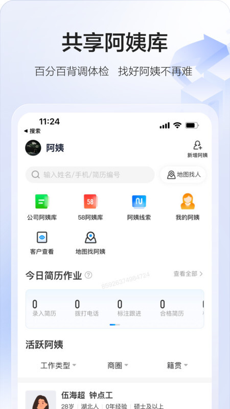 百分百体检与背景调查,待岗阿姨资源共享及创新ACN交易模式,让找到优质阿姨不再是难题。