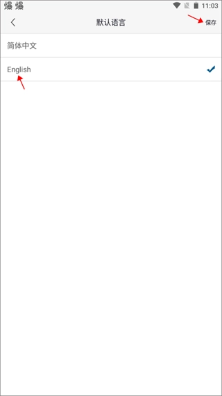 这里有两个选项供你选择,你可以把界面调整为英文模式,这样方便学习。选好之后,点击右上角的保存按钮就可以了。
