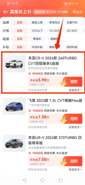 3、在选购页面浏览不同品牌的车型,依据自身需求查看各车型的具体信息。