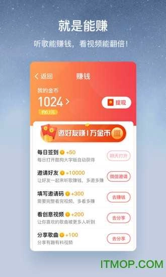 听歌、看视频、邀请好友、完成任务……轻松领取金币,实时提现到账,让爱好也能有点小收获。