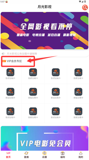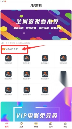 3、验证成功后返回首页,点击VIP会员专区即可观看内容。