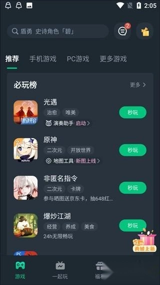 热门大作免费畅玩:海量正版端游任你选,还有合作版游戏可免费试玩,用手机就能轻松体验振刀操作。