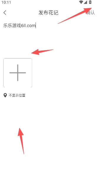 3、进入发布内容的编辑区域后,输入你想记录的内容,点击添加图片,同时选择是否显示所在位置,等这些操作都完成后,点击确认发布即可。