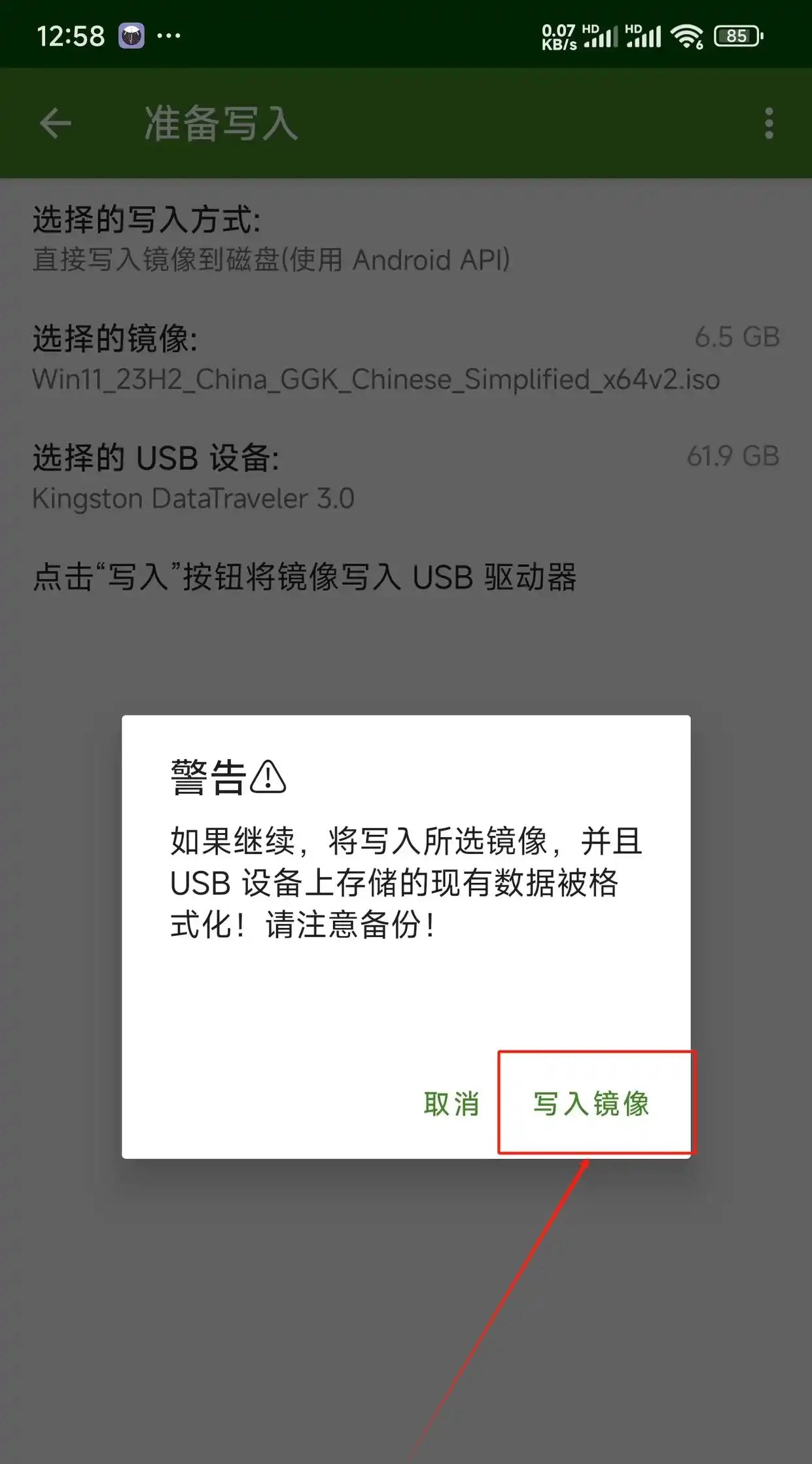 在手机本地启动EtchDroid应用,同时开启手机的OTG功能,连接U盘(可根据实际演示需求选择第一个选项)。