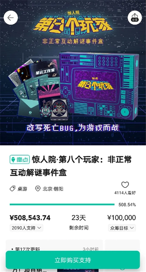 在摩点中,点击项目页面下方的“立即购买支持”