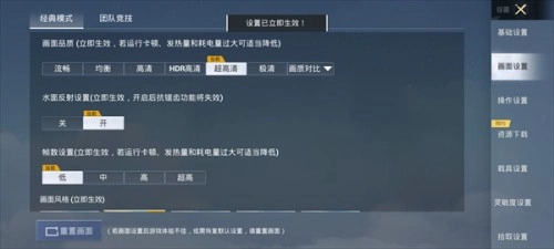 最后进入游戏设置里的画面设置界面,手动把帧率调整为120FPS就可以了,要注意每次启动游戏都得通过画质助手以120帧模式来启动。