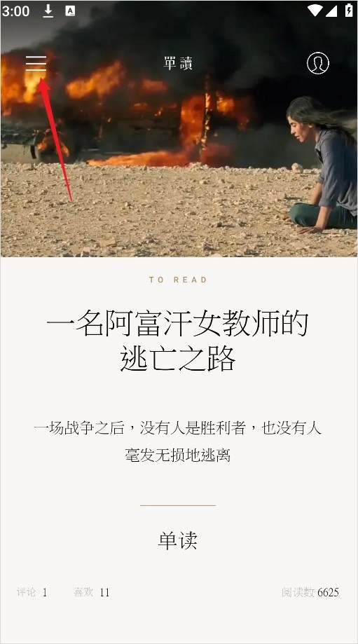 打开单读App后,点击首页左上角的菜单图标,即可进入分类页面。