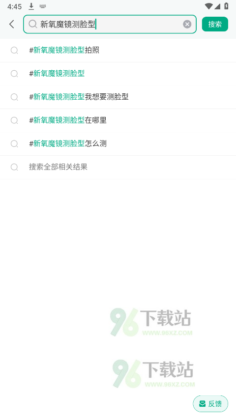 2、然后,输入“新氧魔镜测脸型”,嗖的一下就搜出来了。