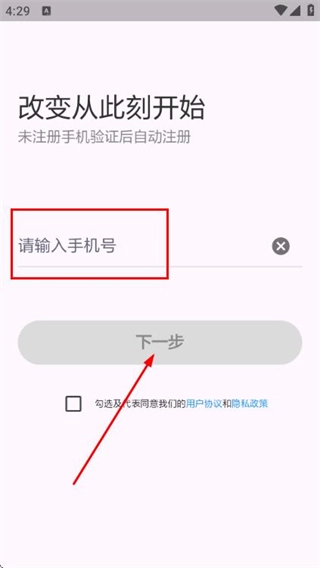 在使用协议和隐私政策弹窗里点击同意按钮后,即可进入登录页面。