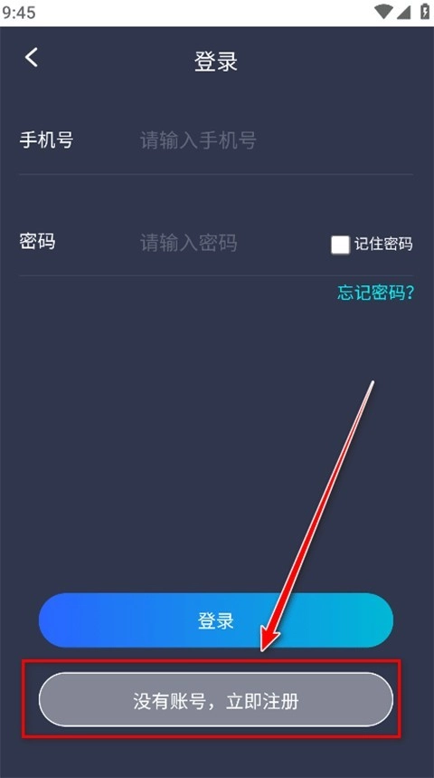 进入登录界面后,新用户可点击底部的“没有账号,立即注册”选项。