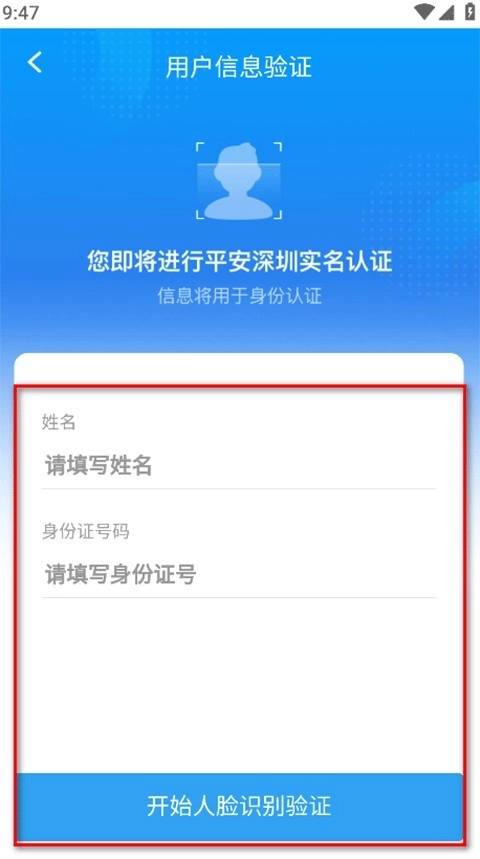 请接着填写姓名与身份证号,再点击“开始人脸识别验证”按钮。