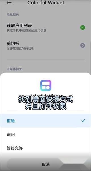 当提示框弹出后,点击“去设置”按钮,系统会自动跳转至设置界面,接着在设置里找到桌面权限选项并开启该权限。
