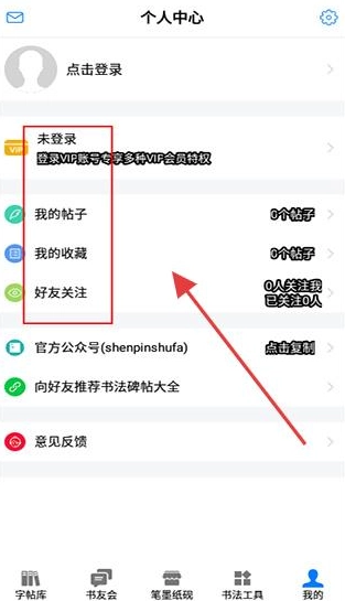 3、无需登录即可浏览权益内容,登录后则可对帖子进行管理、收藏感兴趣的内容,还能添加好友,打造专属于自己的书法交流圈子。