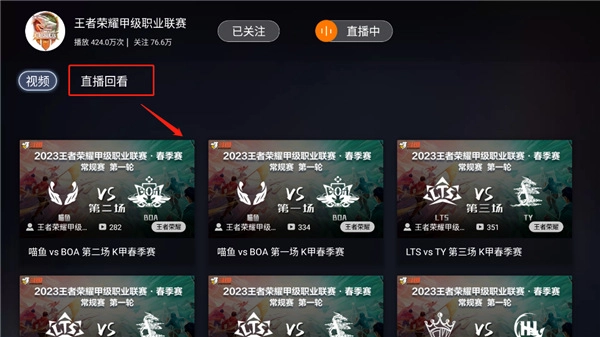 点击这位主播的界面,接着就能挑选自己想要回看的视频。