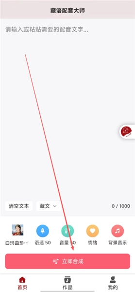 直接在首页输入文案内容,挑选背景音乐、语速等选项,然后点击立即合成