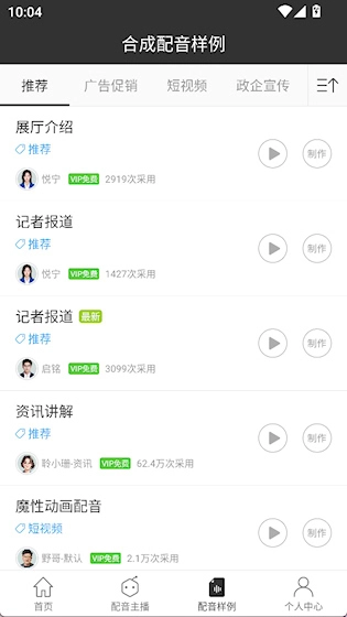 3、免费文案资源 提供大量可用于广告、促销、宣传等用途的现成文案素材,降低内容创作门槛,辅助用户快速启动配音项目。