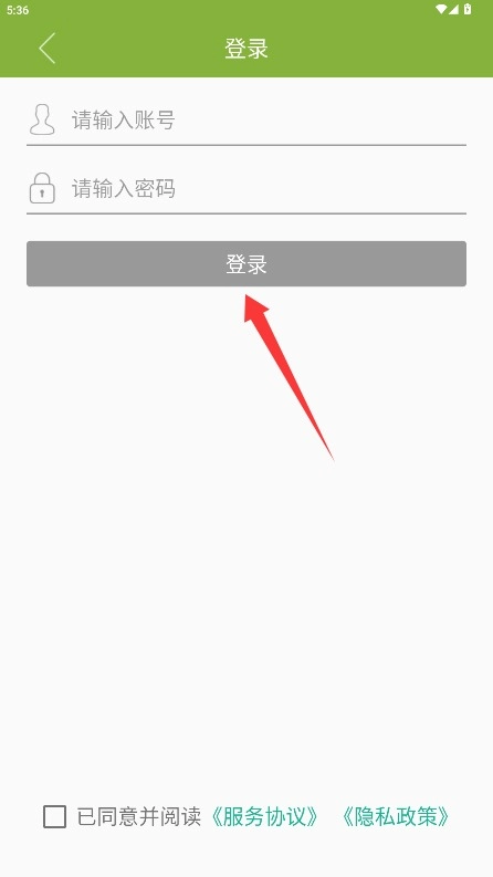 2、在登录界面填写账号与密码,勾选同意相关条款后,点击登录按钮即可进入应用。