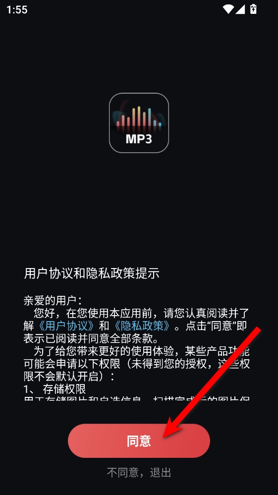1、打开音频提取转换工具之后首先需要同意隐私政策。