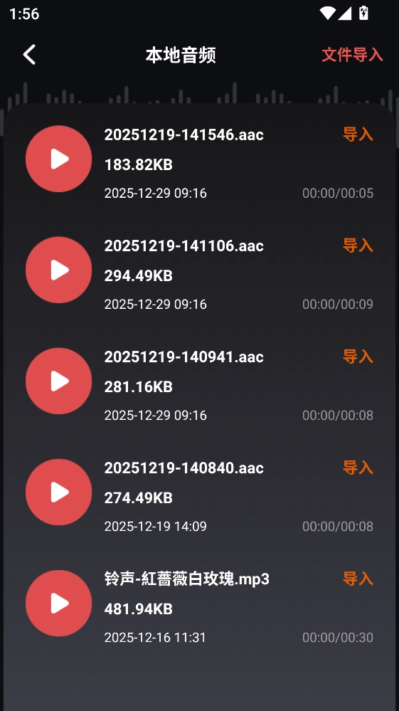 3、点击导入音频,有三种导入的方式。