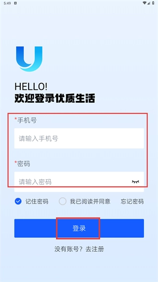 2、进入登录页面后,填写【手机号】和【密码】,勾选对应的相关协议,再点击【登录】按钮,即可完成登录操作。